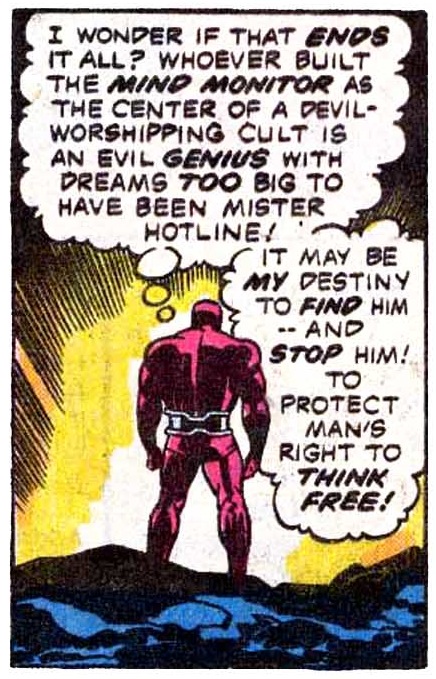 Of course, Mister Machine beats the bad guys- temporarily. But with his own series in the offing, Mister Hotline and the Mind Monitor are too good as villains to be defeated completely.