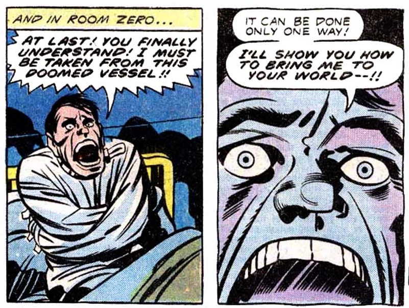 Now, the two gentlemen may have met and compared notes at some point but I can't find any evidence of that at all right now. Kirby loved to borrow an idea as much as the next guy (he knocked off Rollerball around the same time in Cap's monthly title) but I can't find any evidence that he had seen Wilson's manuscript or vice versa.Given Kirby's track record, we might have to chalk this up in the weirdness column.