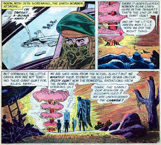 The aliens then provoke the military who launch a nuclear strike. But the attack has an unintended effect; rather than destroy the aliens it transforms them. And now the story gets weird; Binder is trying to say something here that he can't say out loud.