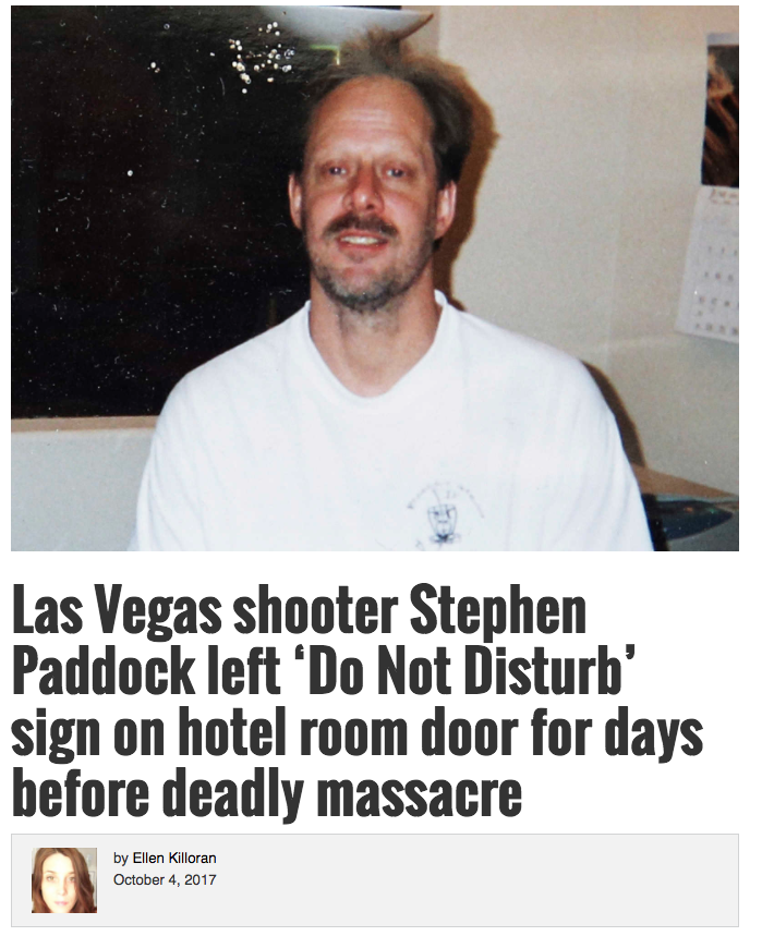 But the major media-- following the "scoop" broken by the Mockingbird flagship New York Times-- revealed that Paddock was able to escape detection by refusing housekeeping service, a claim that Steve Wynn- not exactly known for being a wild-eyed conspiranoid -- publicly called bullshit on.