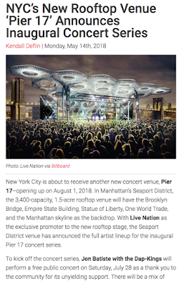 So this story caught my attention- a concert venue called Pier 17 (of course) opening up in the Seaport, speaking of Trans-Mithras and One World Religion Tower.