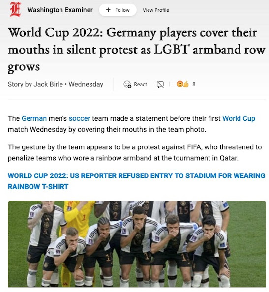 Then there was another strange controversy over migrant workers wearing national symbols of countries they clearly weren't citizens of, which then began another weird pantomime where the Woke pretended they gave two shits about the plight of migrant workers. They obviously don't, never have and never will, and inevitably already dropped the matter.